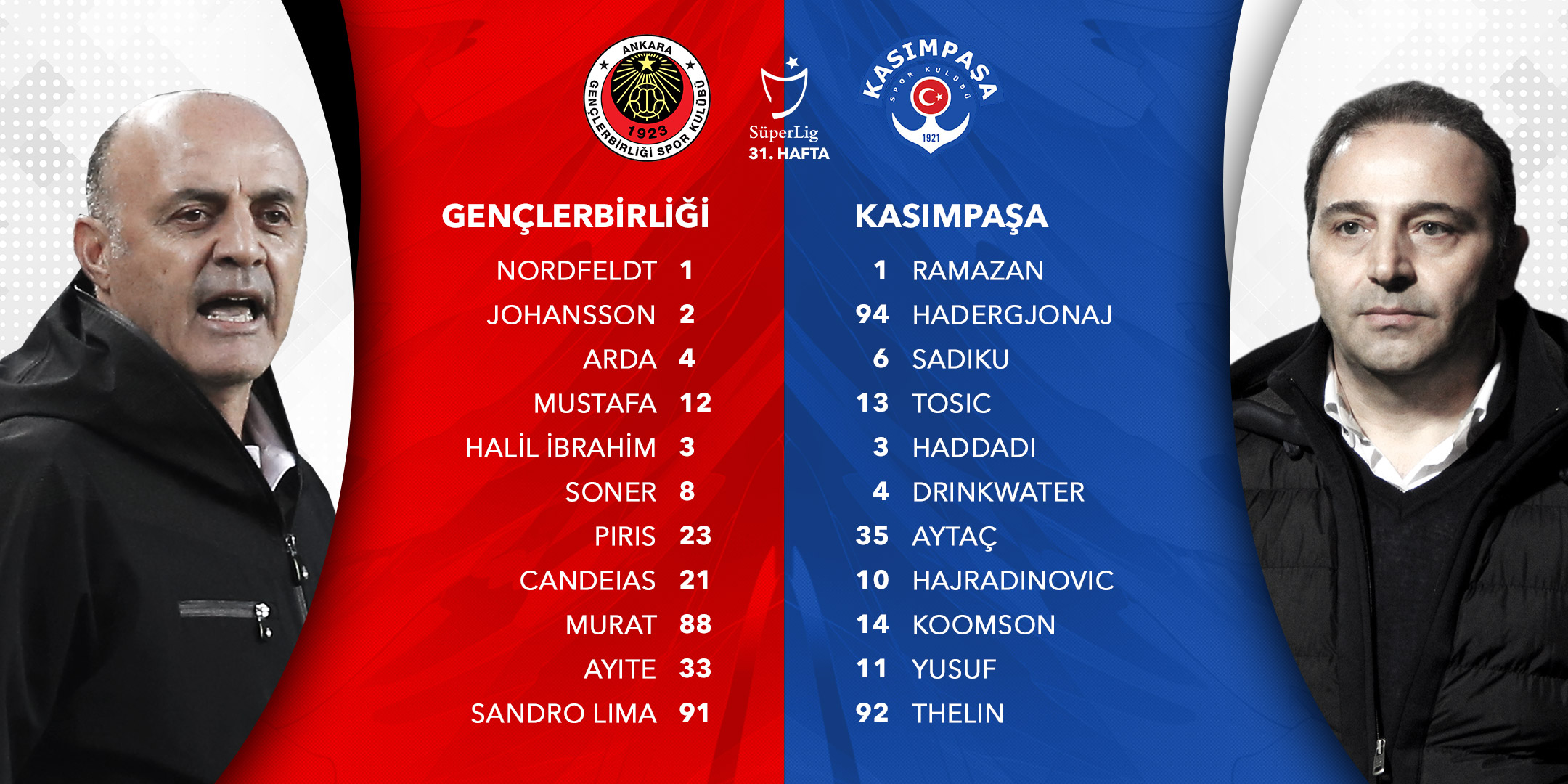 Gençlerbirliği - Kasımpaşa maçında kadrolar...