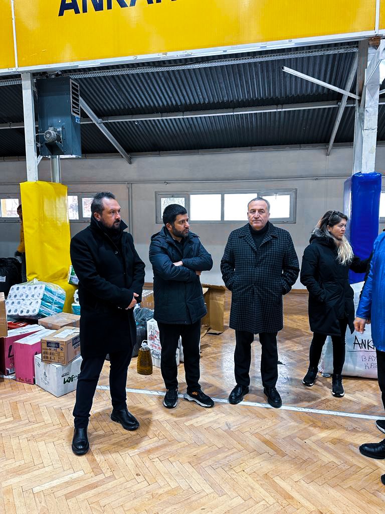 MKE Ankaragücü Kulübü Başkanı Faruk Koca da tesislere gelerek devam eden yardım çalışmalarını inceledi ve ikinci tırı yolcu etti.