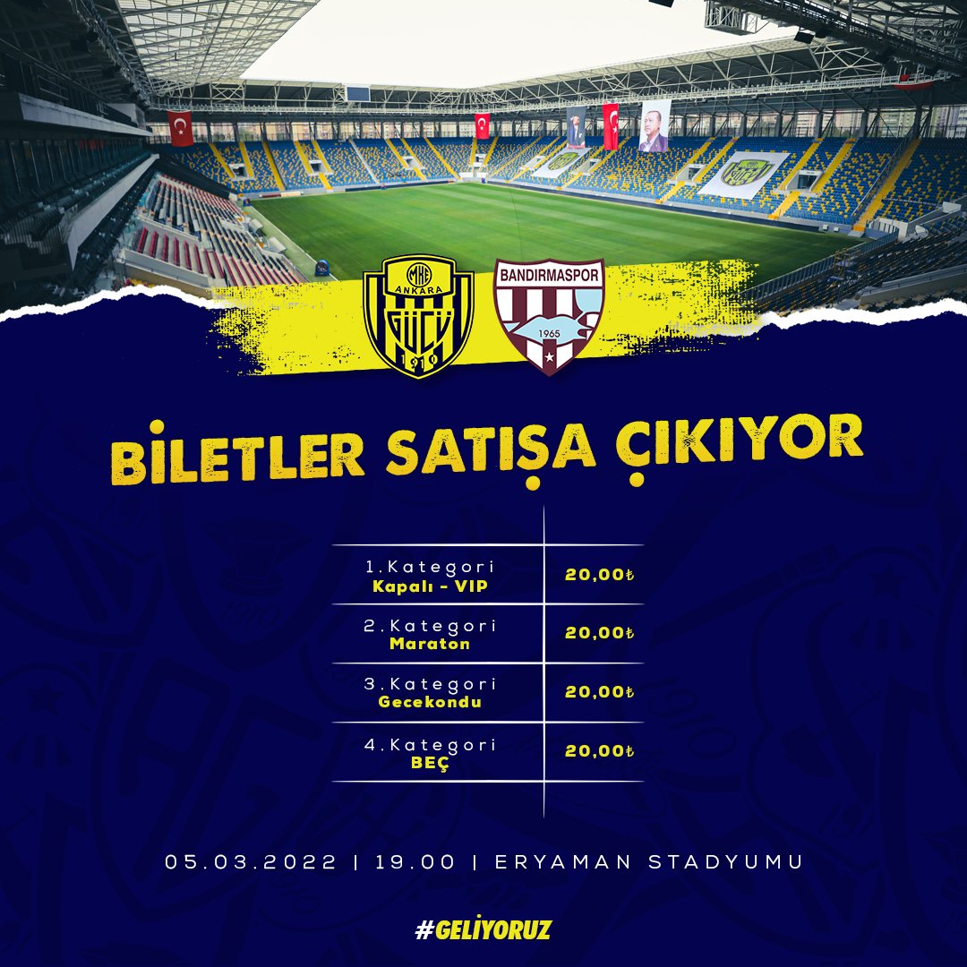 Ankaragücü'nün zorlu Bandırmaspor maçının bilet satışı başladı.